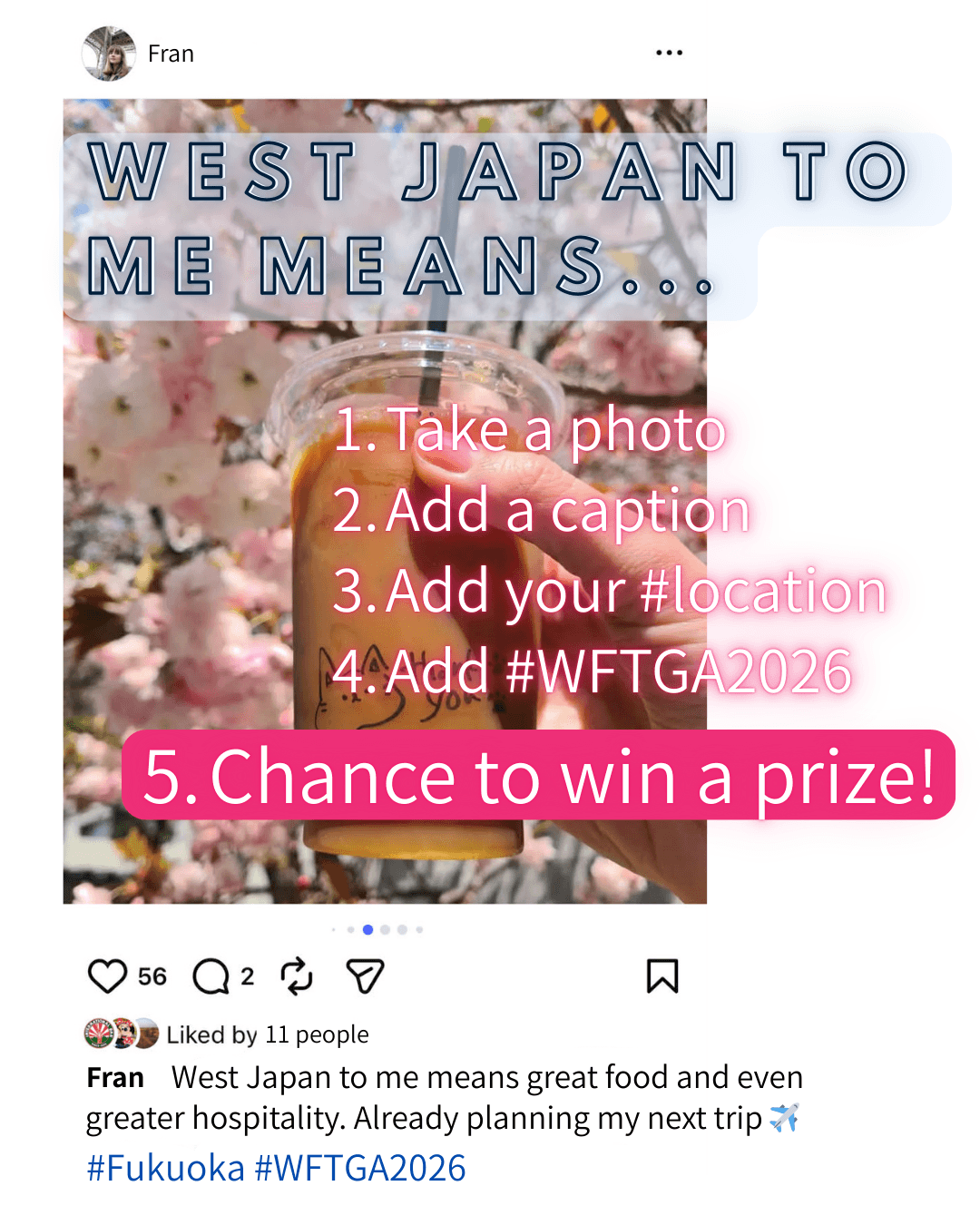 We are delighted to launch the Western Japan Social Media Contest — a special initiative celebrating the culture, landscapes and experiences of Western Japan in connection with the WFTGA Convention 2026 in Fukuoka, Japan. This contest is open to all WFTGA members, regardless of where you are located!