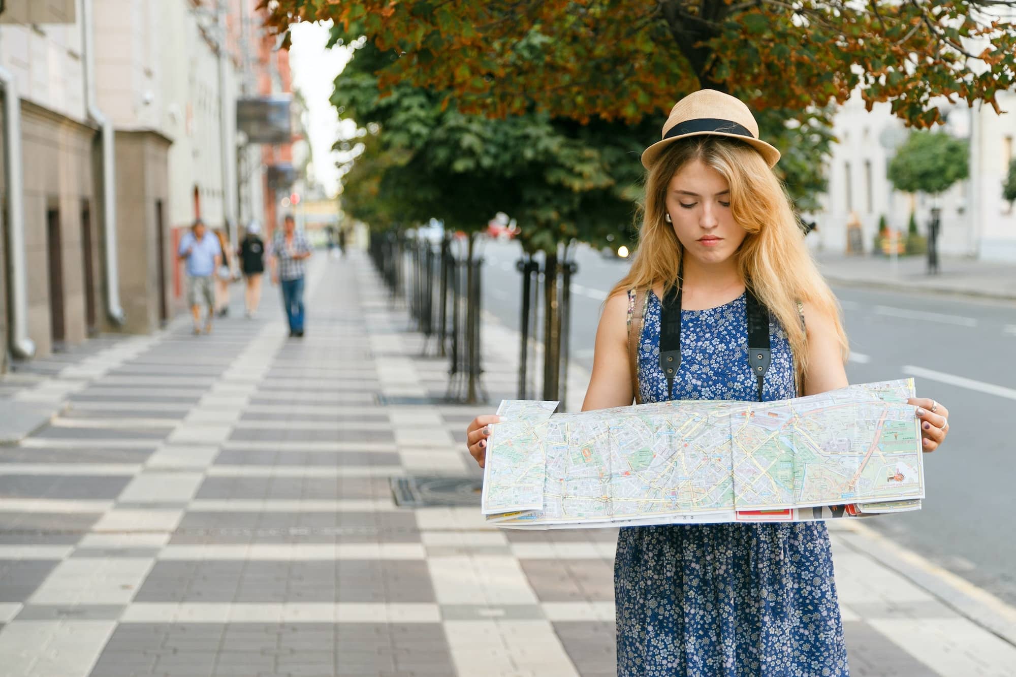 woman traveler lost in foreign city